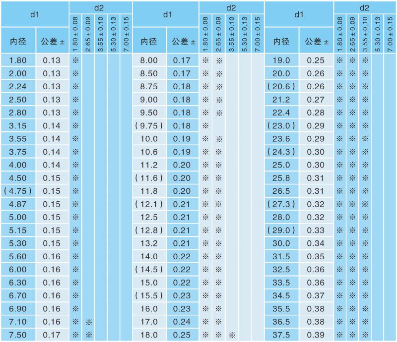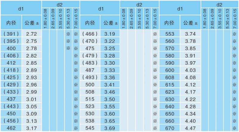 表1:O型圈標(biāo)準(zhǔn)一覽表